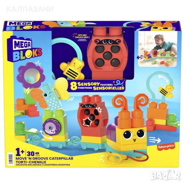 Малките конструктори ще се движат заедно с този очарователен гъсеничен влак. Можеш да построиш гъсеничен влак с движещи се и верижни блокове и дърпаща връв отпред, за да го накараш да се търкаля. След това можеш да добавиш калинка с изскачащ блок, охлюв с функция за завъртане и щракване и пеперуда с текстурирани крила на гърба на гъсеницата, за да дойдат заедно за пътуването. Можеш също да откриеш огледално цвете, текстурирани антени и блокче пчелни мъниста.