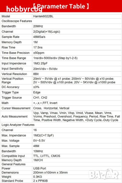 - Сонди модел: Hantek PP-80, 1X-10X, 600V, 60MHz, кабел 120см