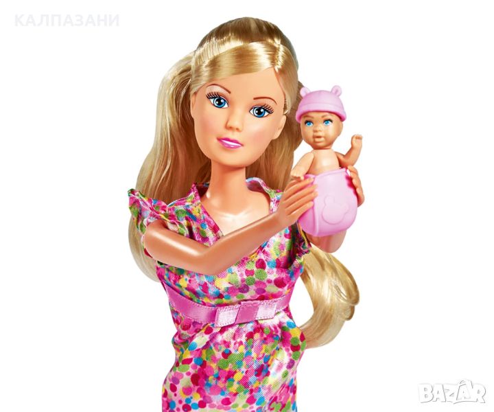 teffi Love е истинска модна кукла. Тя обича шикозни дрехи, модерни прически, малката си сестра Еви и, разбира се, приятеля й Кевин. Момичетата могат да стилизират и обличат своята кукла в актуалните модни тенденции. Steffi Love Baby Surprise се предлага в три страхотни рокли. Стефи е бременна и очаква бебето си с нетърпение. Но никой не знае какво ще бъде? Момче, момиче или може би дори близнаци? Комплектът включва страхотен пакет изненада с над 11 подходящи аксесоара за отглеждането на вашето бебе. Така вие и Стефи можете да се грижите за вашите бебета. Подходящ за деца над 3 години.