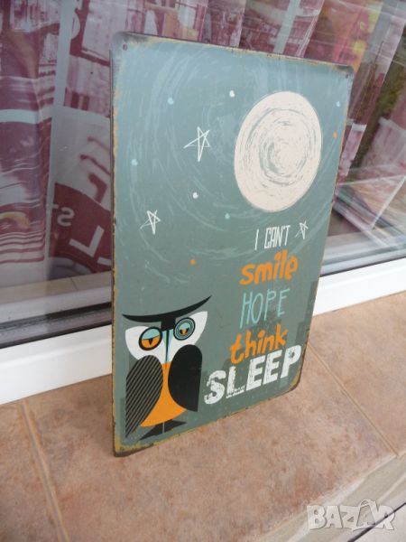 Метална ламаринена табела - I can't smile hope think sleep.