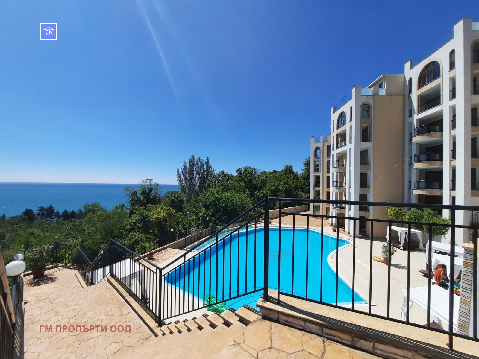 Комплексът е разположен на висока кота, поради което не е възможно другите сгради да закрият панорамната гледка , от страна на морето парцелът граничи с територия на градския парк.
