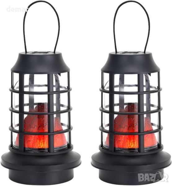 TRIROCKS Комплект от 2 LED фенера, захранвани с батерии, 30 см висок вулканичен пламък, трептящ дъх