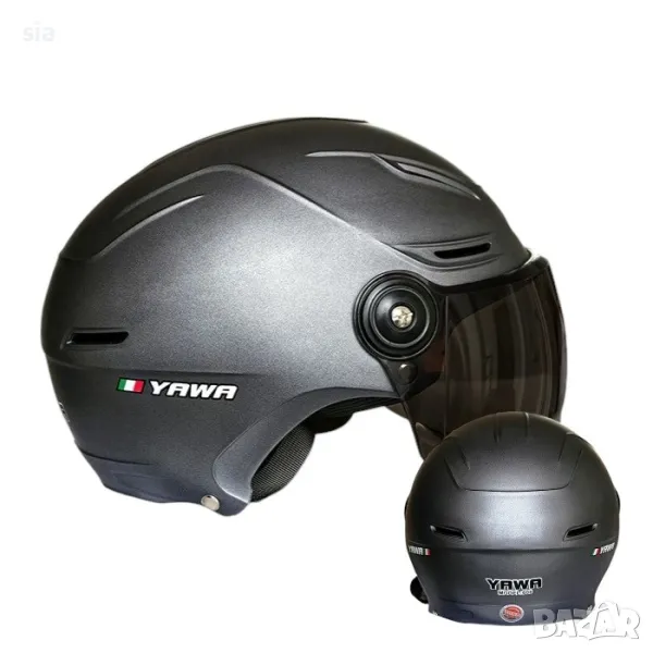 Каска за мотор, шлем за Скутер, Тъмен визьор, Сив Мат