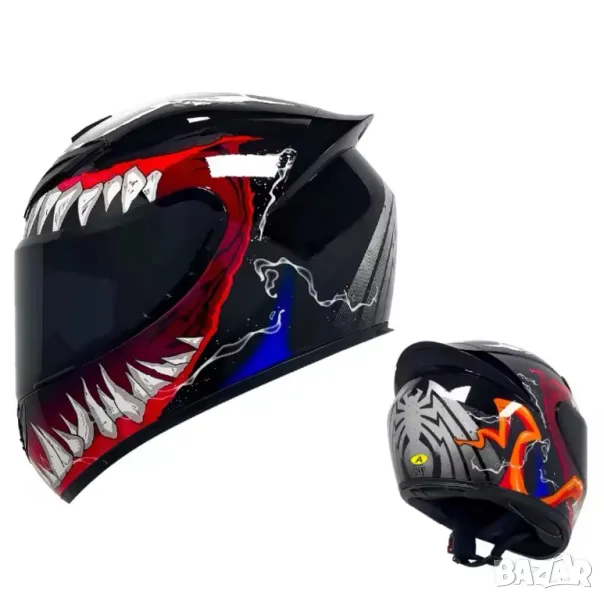 9. Venom Full-Face каска с тъмен визьор + слънчев, скриващ се визьор, Цвят: Черен + Червен, ПРОДАДЕНА!