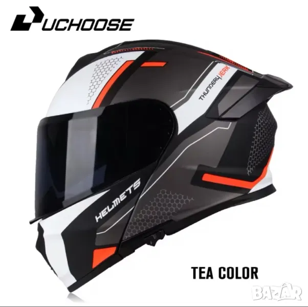 7. UChoose Full-Face Каска с тъмен визьор + слънчев скриващ се визьор, Цвят: Черен + Бял, M(57-58cm), Цена: 85 Евро