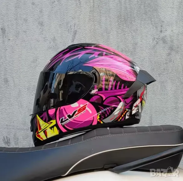 3. LVS Full-Face Каска с тъмен визьор + слънчев скриващ се визьор, Цвят: Розов/Черен, ПРОДАДЕНА!