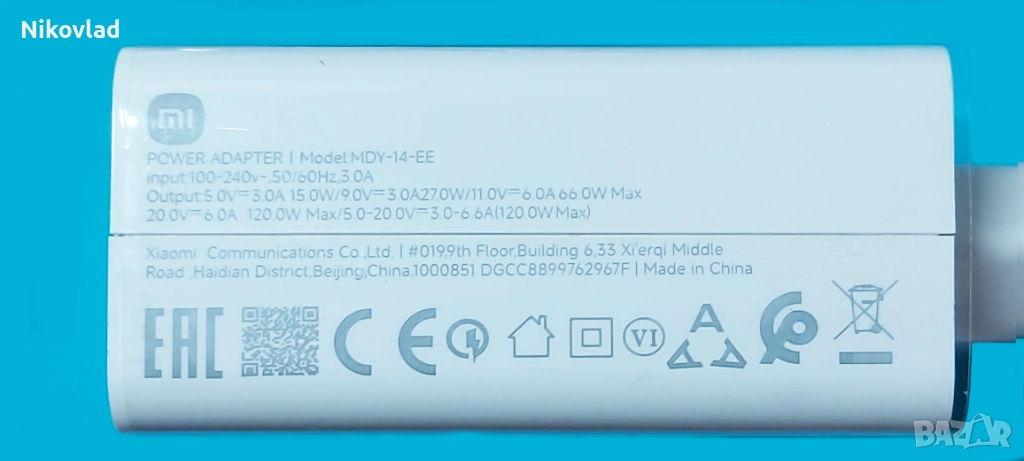 - Изход: 5V/3A 15W, 9V/3A 27W, 11V/6A 66W Max, 20V/6A 120W Max.