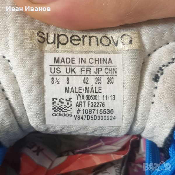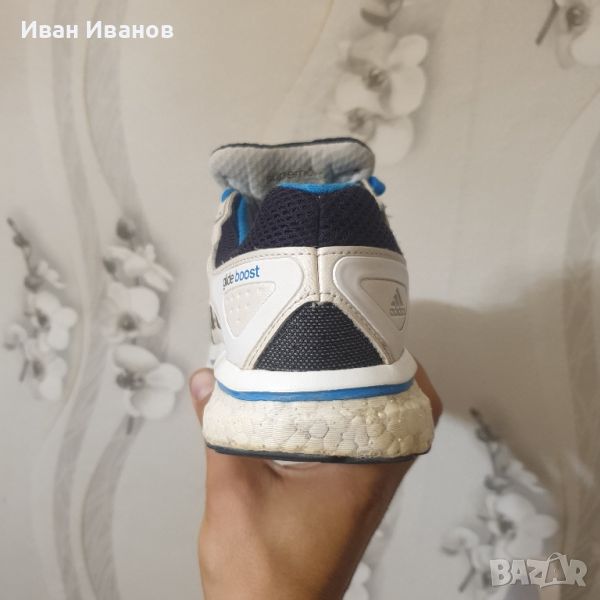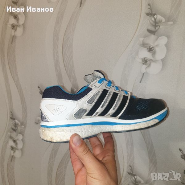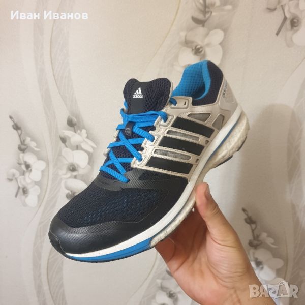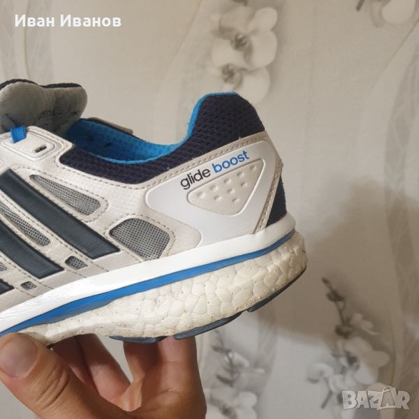 Adidas shoes Supernova Glide 6 Boost. Използвани , с минимални следи , без сериозни забележки Много леки , красиви и удобни . Мъжките обувки Supernova Glide 6 Boost са част от новата линия на марката Adidas, целяща да задоволи изцяло нуждите на спортуващите мъже, които обичат да се грижат за тялото си.Създадени да осигурят максимален комфорт и да превърнат всяко каране в удоволствие мъжки обувки за бягане Supernova Glide 6 Boost са истинска революция, която ще промени живота на бегачите. Междинната подметка Boost™ дава усещане за мекота и изключителна лекота и отлично омекотяване , което ще направи крачката ви по-бърза и по-забавна. Горната част на мъжките маратонки Supernova Glide 6 Boost Adidas е изработена от дишаща мрежа , която насърчава правилното изпотяване на миризмите и поддържа краката топли и сухи дори след продължителна употреба с течение на времето. Поддържащата TORSION® SYSTEM осигурява по-голяма стабилност на свода на стъпалото, докато BOOST™ осигурява незабавна реакция , като прави по-ефективна вашата крачка, дори при неблагоприятни метеорологични условия. всичко това без компромис дори с най-малкия комфорт на оригинала. Липсата на шевове в предната част на стъпалото допълнително увеличава удобството, гъвкавостта и лекотата, които правят маратонките за бягане от мъжки Adidas уникални по рода си .Външната подметка е изработена от гума Continental™ , която осигурява добро сцепление и здраво сцепление дори при дъжд.Изтънченият дизайн и авангардните обувки на Adidas Supernova Glide 6 Boost ги прави уникални и ги отличават от обикновените спортни обувки. Подарете си опит от бягане на най-високо ниво, в допълнение към Supernova Glide 6 Boost за мъже!supernova glide 6 m Текстил (мрежа / син)Плъзгайте се през всяко бягане с boost™ безкрайно връщане на енергия и омекотяване. Безшевна инженерна мрежа, пълна предна част на стъпалото Continental™ Rubber и изцяло новата философия FORMOTION® се адаптират към различни стилове на бягане.Свойствата на boost™ за връщане на енергия поддържат всяка стъпка заредена с безкраен запас от лека, бърза енергияТекстилна горна част с безшевна мрежа в предната част на стъпалото за максимален комфорт и лека гъвкавостВъздушна мрежеста подплата за максимална дишаемостTORSION® SYSTEM за цялост на средната част на стъпалотосъвместим с miCoachХващаща се подметка? Continental™ Rubber за оптимално сцепление при мокри условиятехнологияБезкрайна енергия: Новата пяна BOOST™ с нейните уникални енергийни капсули предлага магическа комбинация от функционални предимства: За разлика от всяка друга пяна, тя осигурява меко и еластично омекотяване и се чувства „жива“. Зарежда с енергия крачката ви при бягане за повече ефективност, независимо от температурата и осигурява максимален комфорт.