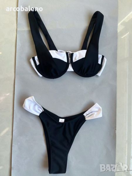 Дизайн: Тези бикини от две части се отличават с модерен черно-бял дизайн в съчетание със секси тиранти с презрамки за стилна плажна визия.