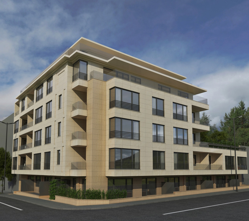 Продаваме двустайни апартаменти с площи от 75 кв. метра до 81 кв. метра в новострояща се малка луксозна жилищна сграда в кв. Кръстова вада - на 700 метра от МОЛ Парадайз, от метростанция Витоша и от Южния парк и на 100 метра от бул. Черни връх и от бъдещата станция на метрото. Цените са от 183 000 евро до 202 000 евро без ДДС. Апартаментите са с южно или западно изложение, с най-висок клас алуминиева дограма REYNAERS с тройни стъклопакети, топлоизолация, шумоизолация и водно подово отопление, осигурявано от газови котли. Фасадата на сградата е с каменни облицовки и декоративни мазилки, настилките в общите части са от мрамор и гранит, терасите са с настилки от гранитогрес и стъклени парапети. Сградата разполага с две нива подземни гаражи и паркоместа, с луксозен асансьор Коне, с контрол на достъпа и с открита озеленена тераса за общо ползване над втория етаж.