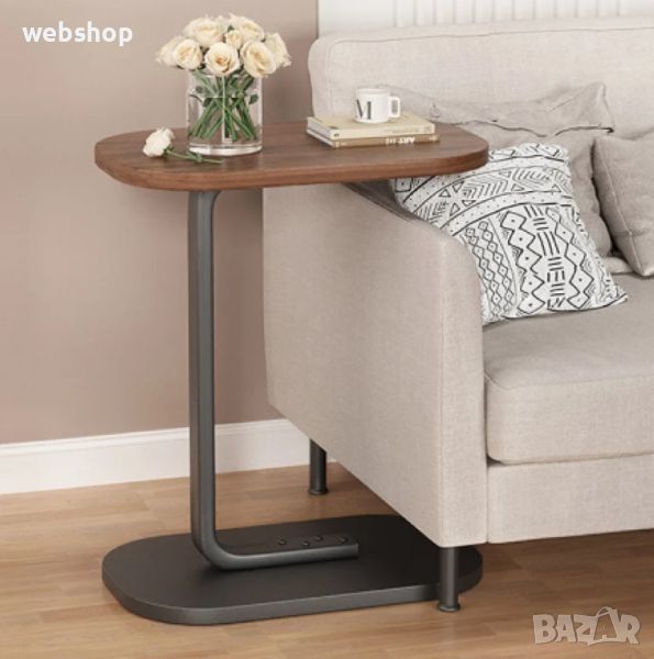 Модерната помощна масичка на снимката съчетава стил и функционалност. С елегантния си дизайн и стабилна основа, тя е идеално допълнение към всяко обзавеждане. Горният й плот е достатъчно просторен за книги, напитки или декоративни предмети. Изработена от висококачествени материали, масичката обещава дълготрайност и устойчивост. Тя е перфектна за хола, спалнята или офисното пространство.