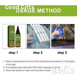 Car Glass Oil Film Cleaner е препарат за почистване на прозорци на автомобили, огледала, фарове и други стъклени, пластмасови и ламинирани повърхности. Препарата е особенно подходящ за почистване на упоритите налепи от автомобилният трафик и полепналата мърсотия, с които всеки шофьор се е сблъсквал. Не оставя ивици, като същевременно намалява натрупването на налепи върху стъклото. Почиства бързо и ефективно.
