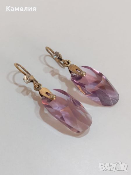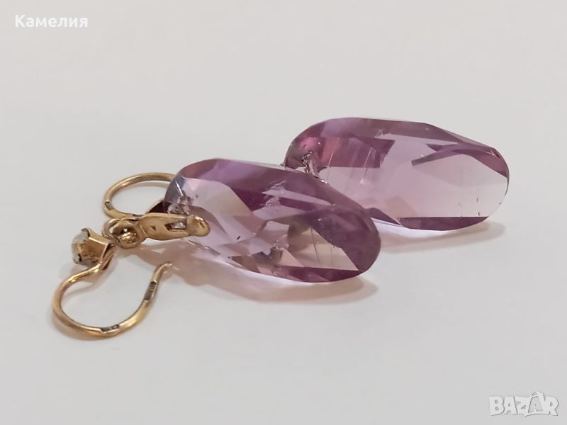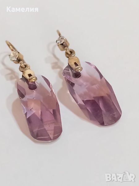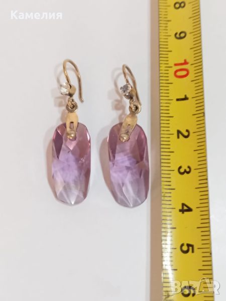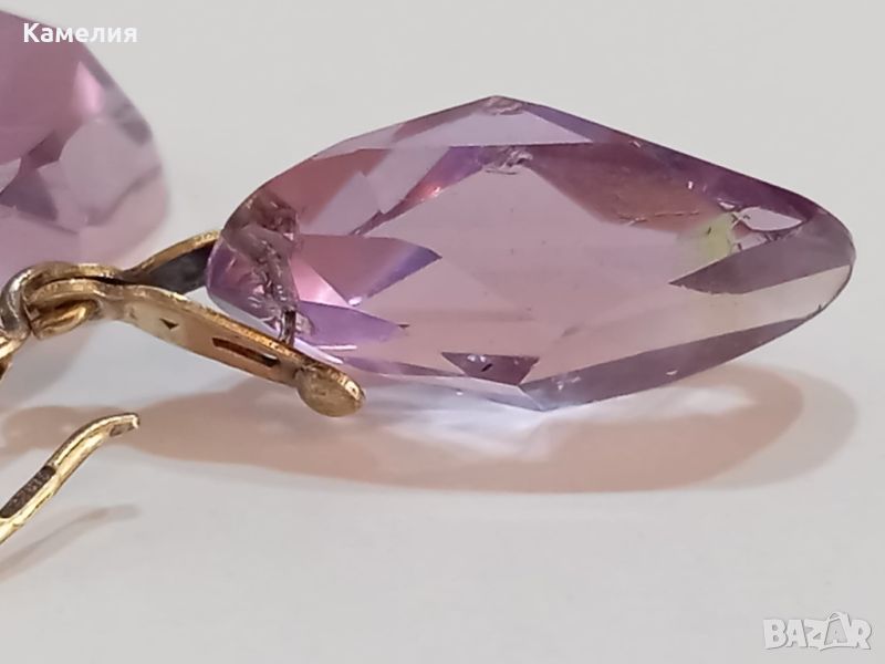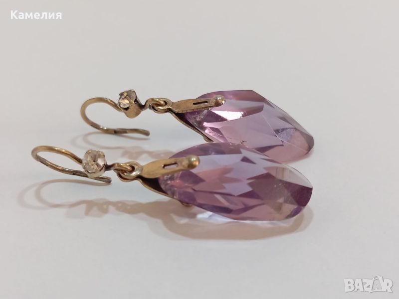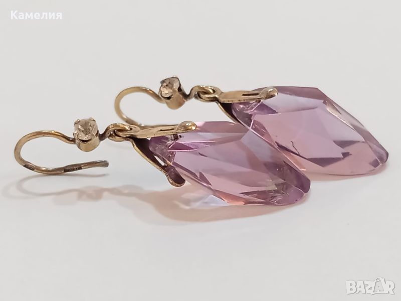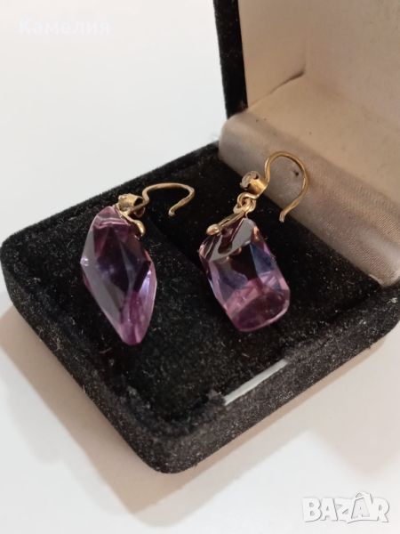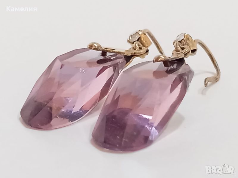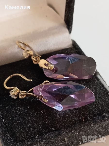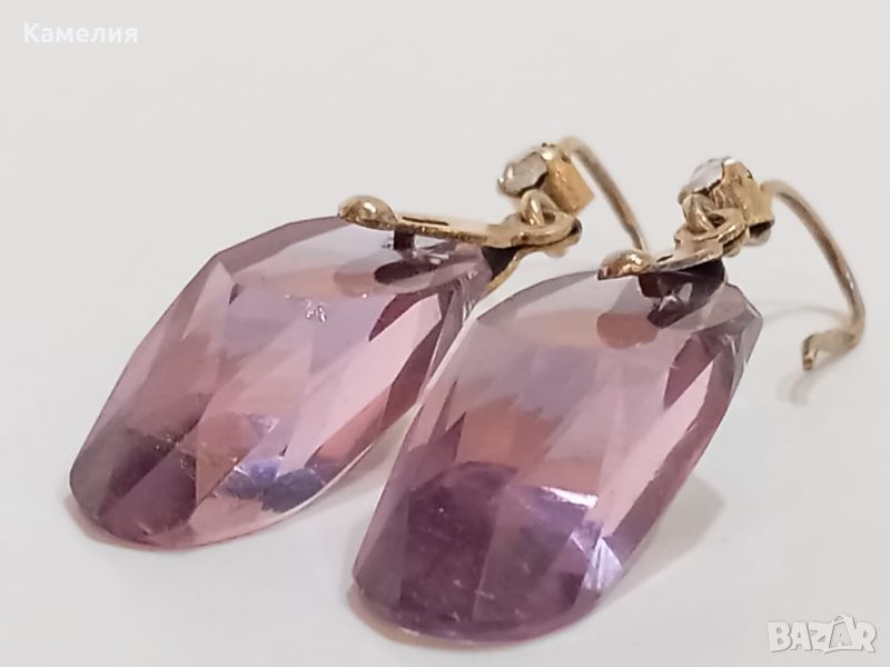 Руски ( съветски) сребърни позлатени винтидж обеци. Проба 875 звезда, тегло 7,07 грам. Камък цвят лилав. Има точица на камъка.