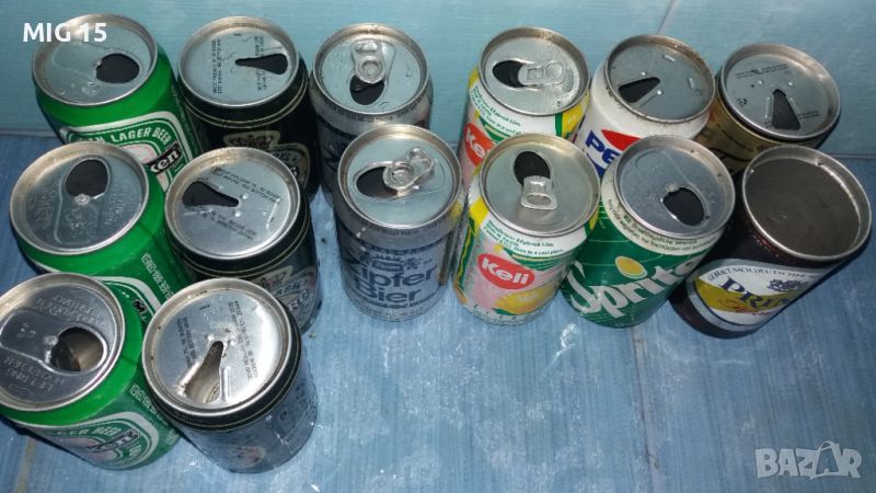 Продавам 14 броя стари кенчета ( кенове , алуминиеви кутийки ) от бира и безалкохолни. От 1989 - 1991 г. Не са в идеално колекционерско състояние , някои имат малко избеляло или вдлъбнато. Цена - 5 лева за бройка.