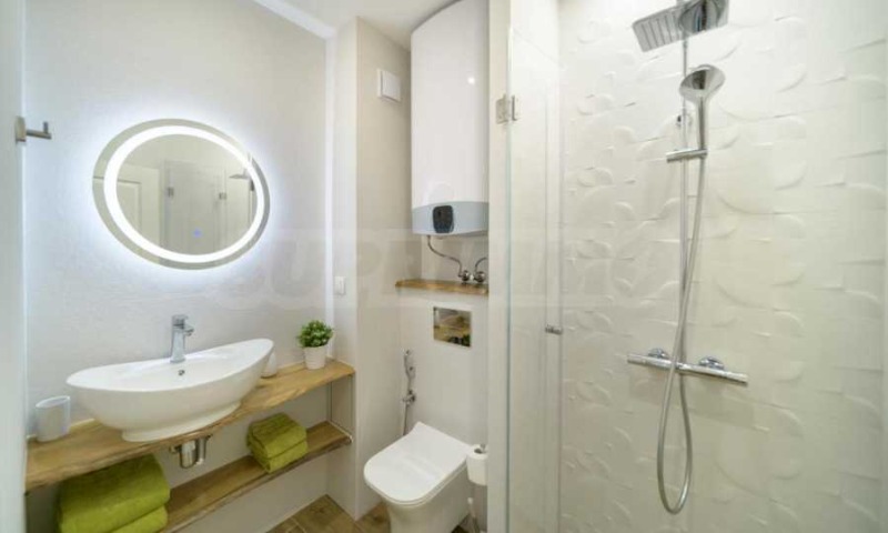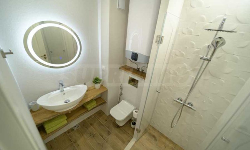 Банята е оборудвана с душ кабина и всички необходими удобства, в имота има и пералня.