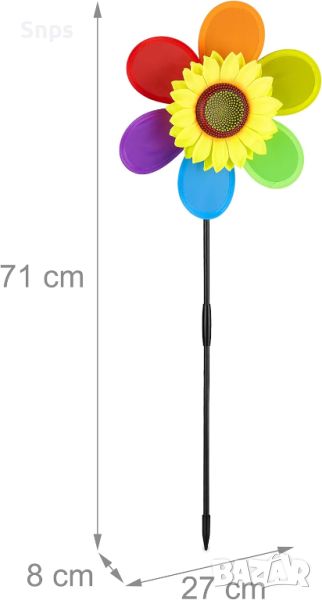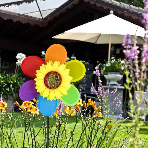 Искате ли да внесете повече забавление и цвят във вашето външно пространство? Тогава тази лятна вятърна мелница в слънчогледов дизайн е идеалната градинска декорация за вас. Просто свържете частите заедно и поставете сглобените вятърни въртилки в саксии за цветя или кутии за прозорци. Насладете се на цветовете на дъгата, когато колелото започне да се върти. Тези ветрогенератори са подходящи за всяка външна зона.