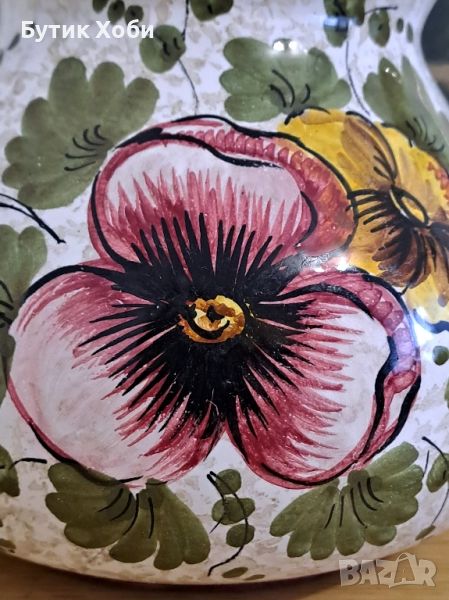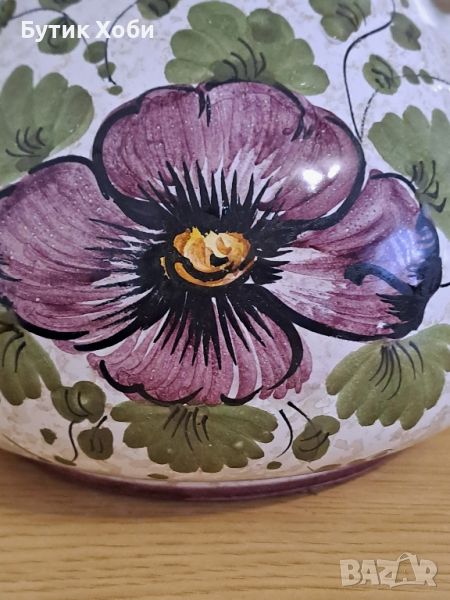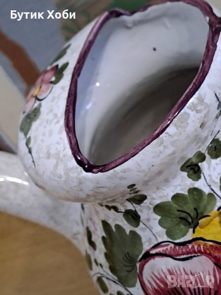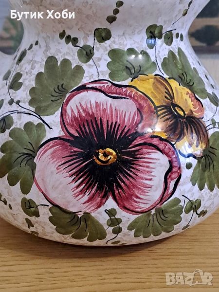 Впечатляваща италианска керамична кана ( майолика) Майсторски ръчно изработена и рисувана с флорални мотиви. Маркирана.В добро състояние е, следи от употреба има само по