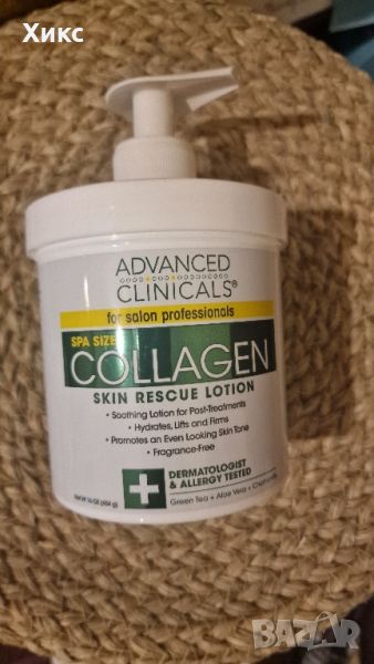 ADVANCED CLINICALS COLLAGEN CREAM – Колагеновият крем за лице и тяло помага за премахване на появата на бръчки, фини линии, възрастови петна и отпусната кожа, които се появяват с възрастта. Концентрираните доказани формули са чудесни за използване под очите, шията, деколтето, ръцете и тялото. БЕЗОПАСНА АЛТЕРНАТИВА НА ОПЕРАЦИЯТА ИЛИ ИНЖЕКТИРАНЕТО НА КОЛАГЕН - Стегнете проблемните зони, хидратирайте, овлажнете и стегнете кожата си. Успокояващият лосион е чудесен за след лечение, след операции и за намаляване на появата на белези.