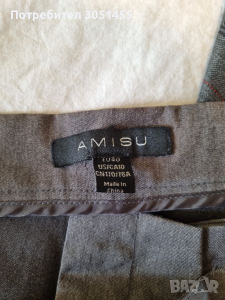 Дамски лот, подходящ за офис, в сиво. Къси пейпърбаг панталонки и разкроена пола с дължина до коляното. Отговарят на размер голям С, или М. Нови, със свалени етикети.
