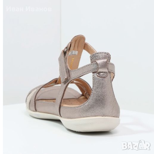 / Богата, класическа кожена горна част. Естествена, мека кожа, лека и дишаща / Кожен хастар. Меки и удобни, осигуряващи перфектен вътрешен климат / EVA формована подложка с кожено покритие. Супер мека и дишаща и с отлично омекотяване / Директно инжектирана еднокомпонентна PU външна подметка. Издръжлива, гъвкава и лека подметка / Лек и женствен сандал. Напълно регулируем с удобно затваряне с катарама /