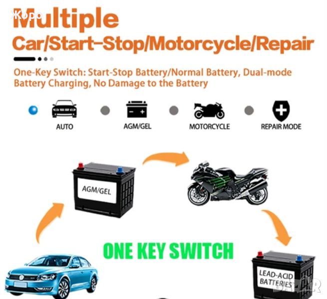 Видове батерии: Повечето видове оловни батерии, включително калциеви, GEL и AGM, мокри, EFB и др.