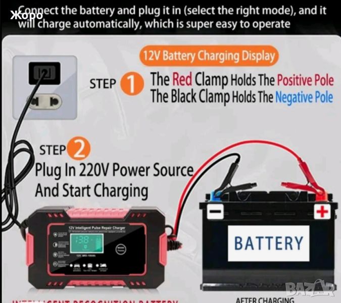 Пакетът включва:1x12V 6A интелигентно зарядно устройство