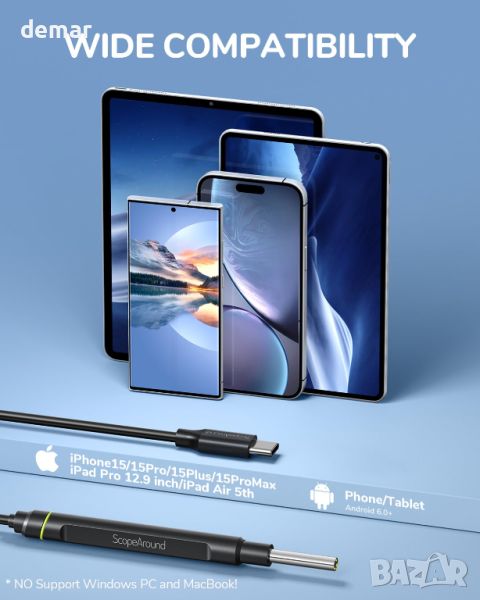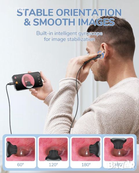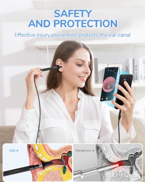 ScopeAround Камера за уши с отоскоп, за отстраняване на ушна кал, съвместим с iPhone 15/ Android