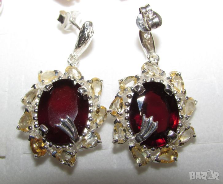 925 сребърни обеци с 16 карата гранат хезонит, размер 37x22x13мм, тегло 12.5гр. → Обява 46191290