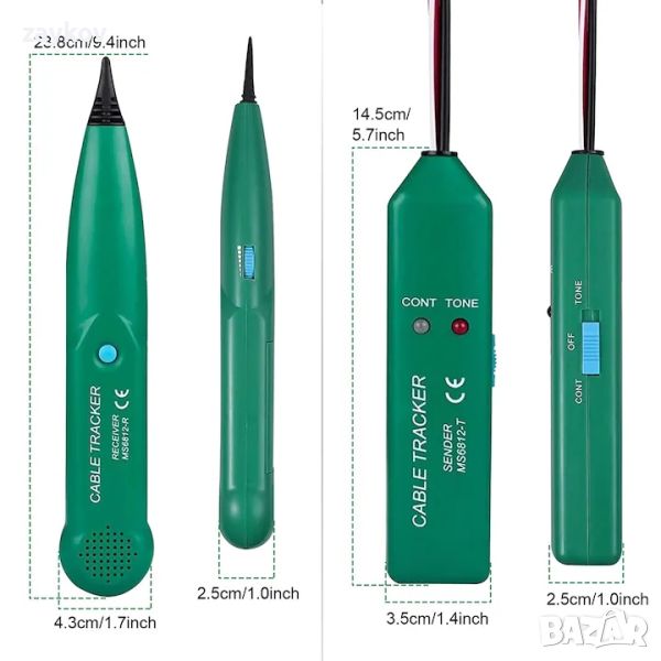 Размери: 145 x 35 x 25 mm (предавател) 238 x 43 x 26 mm (приемник)