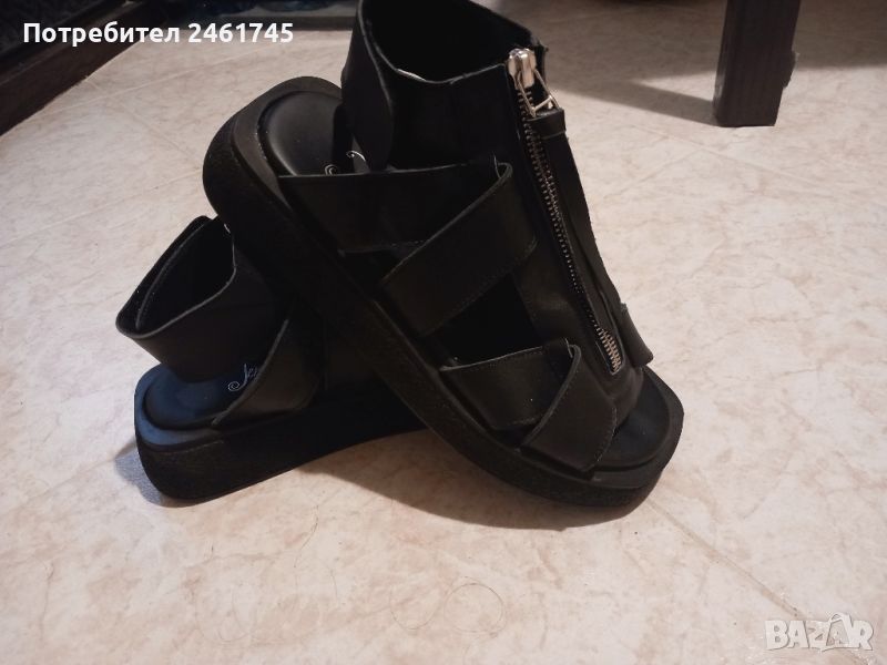 Продавам нови черни сандали от естествена кожа с каишки на горната част.Слагат се супер лесно с лепка отзад.Купих ги от Tendenz вчера,но са ми малки(носени 1 час).Номер 38,но стават и за 37ми,заради модела на подметката.