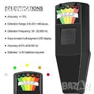 Детекторът работи с една батерия и отчита ЕМП измервания в диапазона от 0 до 20 милигауса. Лесно се носи със себе си, защото се побира в джоба или чантата ви. Безжичният дизайн е по-удобен за използване без многократно подреждане на захранващия кабел.