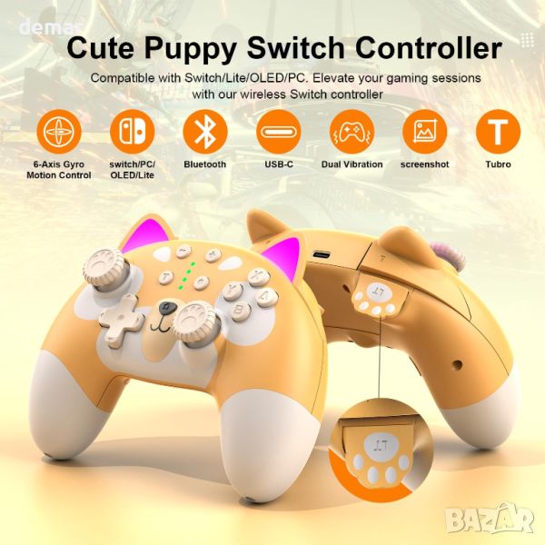 STOGA Cute Puppy Switch Controller - Безжичен Gaming Pro контролер за PC, Switch OLED и Switch Lite