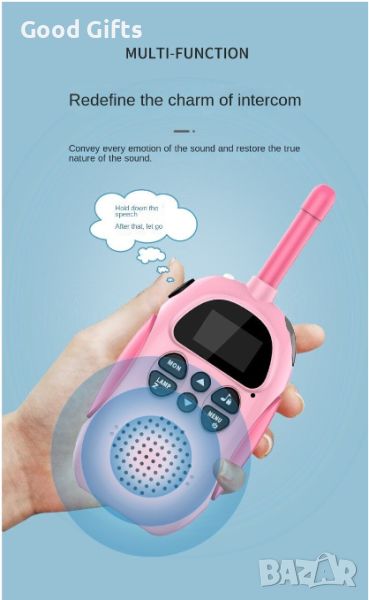 Превърнете всяко приключение на вашето дете в незабравимо изживяване с нашата многофункционална уоки токи! Идеално за игра на открито, пътуване или дейности на закрито, това устройство обединява комуникация, безопасност и забавление в една цветна и привлекателна джаджа.