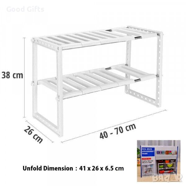 Забравете за големите и тежки, допълнителни шкафове, с тази етажерка Органайзер за кухненски шкафове ще спестите много пространство, тъй като се побира във всеки един шкаф. Подарете си удобство и забравете за хаоса у дома още сега! Поръчайте етажерката още сега и ще останете изключително доволни!