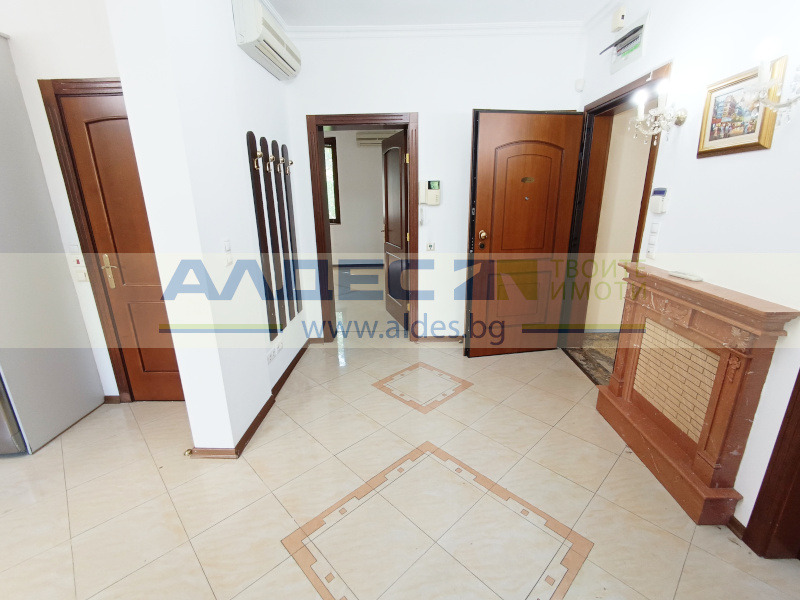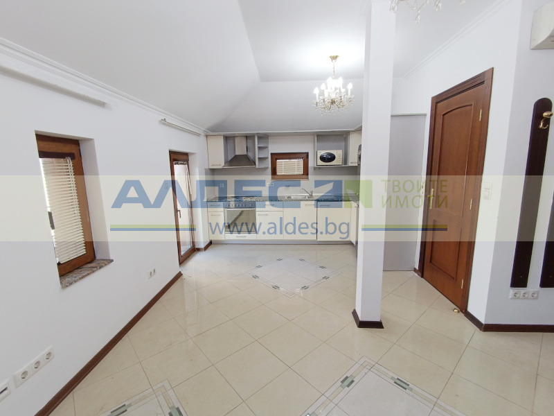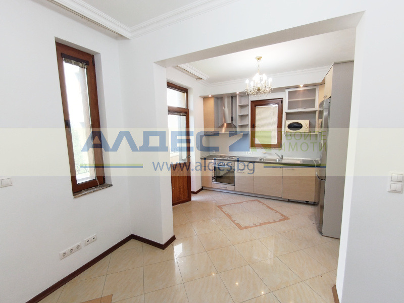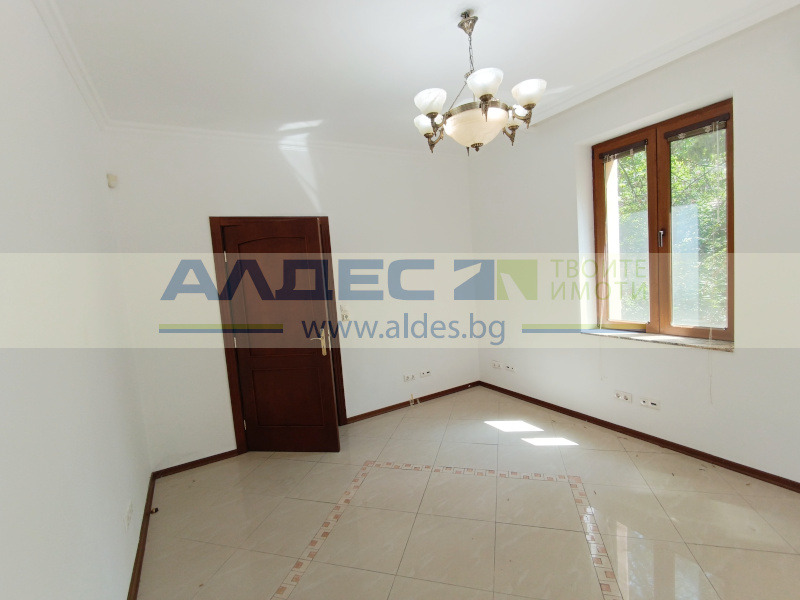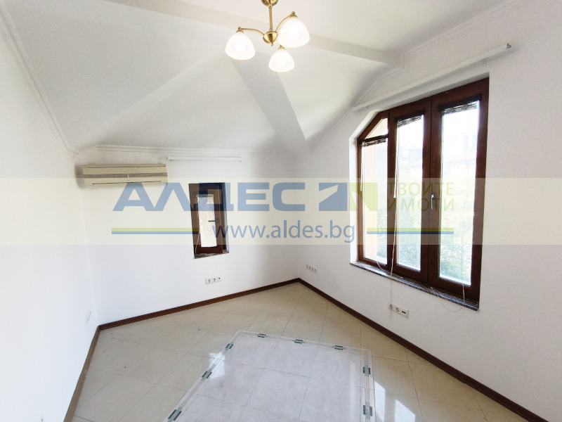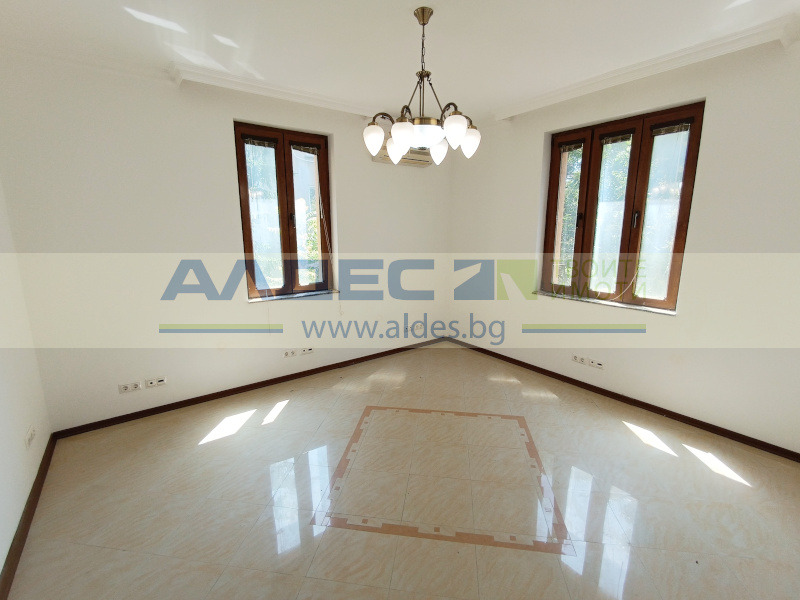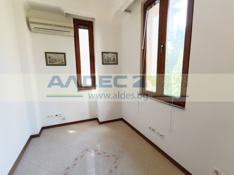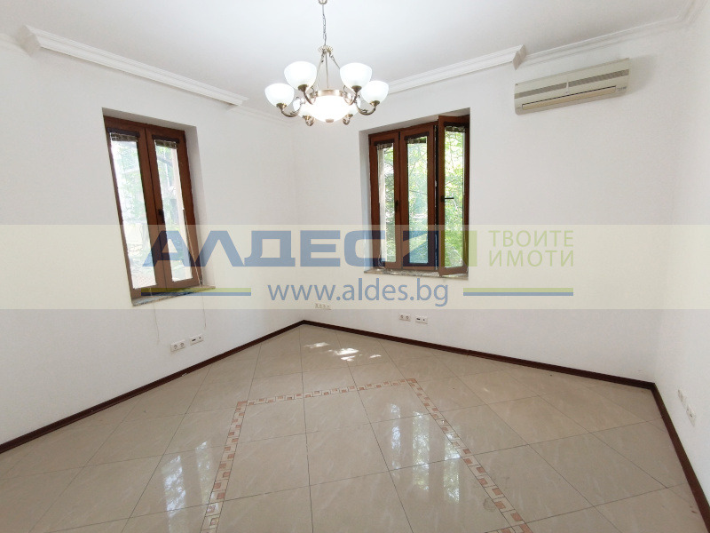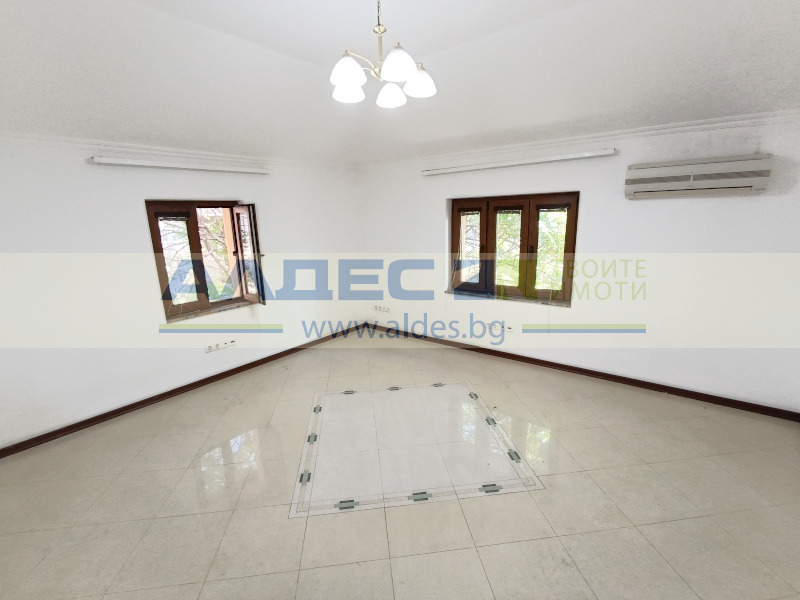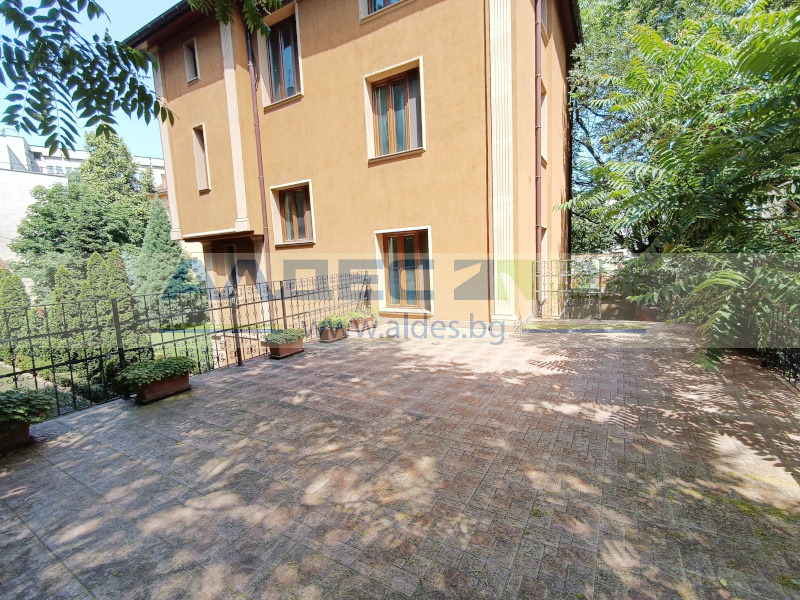 УНИКАЛНА, ПРОСТОРНА, В ОТЛИЧНО СЪСТОЯНИЕ КЪЩА, подходяща за офис, на 100 м. от парка Заимов, бул. Евлоги и Христо Георгиеви, метростанция Театрална. Имота преставлява 4 ет. по 90 кв.м. всеки, двор 550 кв.м. Сградата е изцяло реновирана 2007 г., външна изолация, PVC дограма. Двора е поддържан с допълнително оформен кът с барбекю и достъп до голяма външна тераса. РАЗПРЕДЕЛЕНИЕ: 1ви ет.- входно антре, малка кухня с бокс, три стаи, като едната може да се ползва като сървърно помещение, санитарен възел. 2ри ет- едно малко помещение, вход към самия етаж, който се състои от отворена стая с кухненски бокс, още 3 стаи, баня с тоалетна. 3ти ет.- отворена стая с бокс, още три преходни, достъп до тераса, санитарен възел. 4 ет.- отворена стая с бокс, три преходни, тераса, санитарен възел. В общи линии етажите са типови с малки изключения в помещенията. ОТОПЛЕНИЕ: има подово отопление във всяко помещение на всеки етаж с термостат, както и климатици. ПОДОВИ НАСТИЛКИ: в основните помещения- гранитогрес, санитарни възли- фаянс и теракота. Има достатъчно място за обособяване на голям брой работни места. Къщата разполага с пълно оакбеляване за интернет. Всеки етаж разполага с оборудван кухненски бокс. Двора се поддържа от градинар целогодишно. ИЗЛОЖЕНИЕ: стаи с бокс, една стая- З, останалите стаи- И. Има възможност да се паркират няколко автомобила в двора. Отдава се дългосрочно. ЗА ПОВЕЧЕ ПОДРОБНОСТИ И ОГЛЕДИ: Оферта А5002
