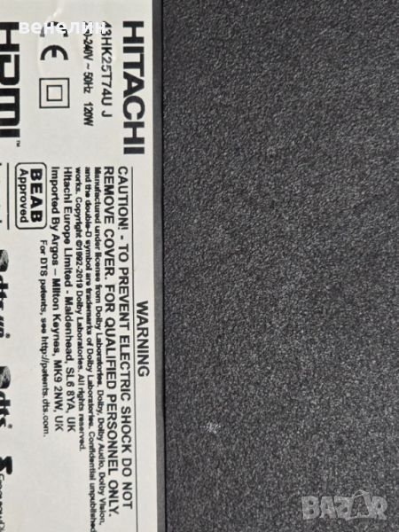 Частите са демонтирани от телевизор HITACHI 43HK25T74U със счупен дисплей.