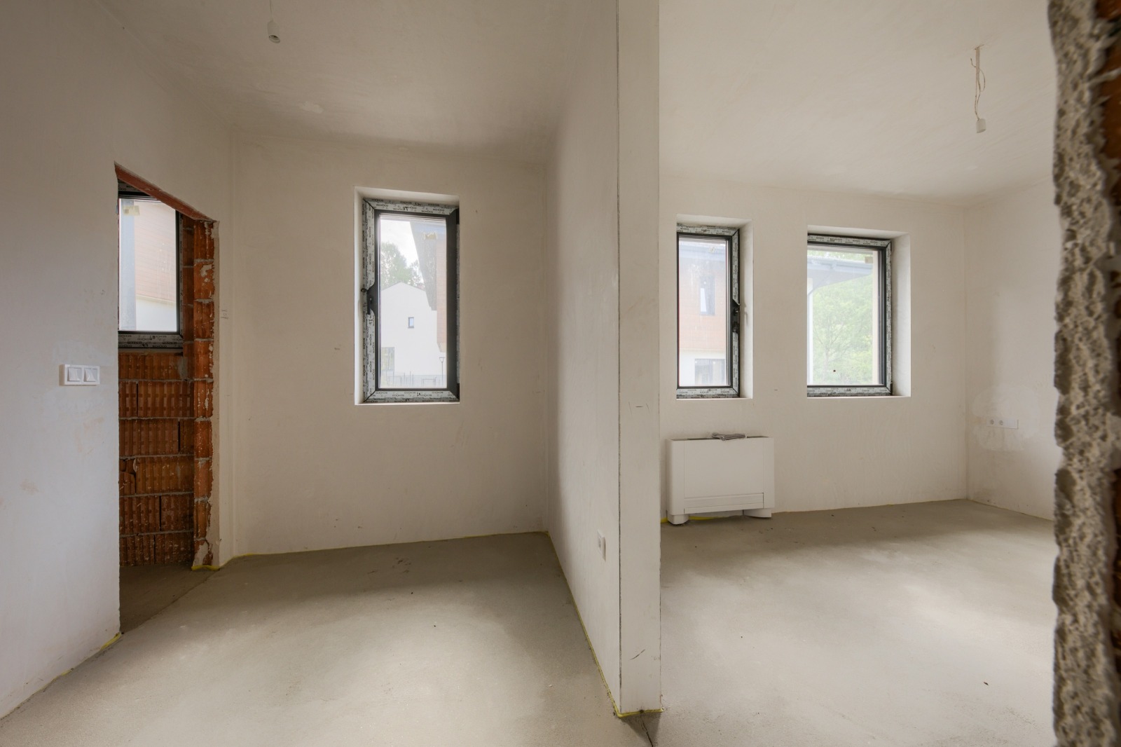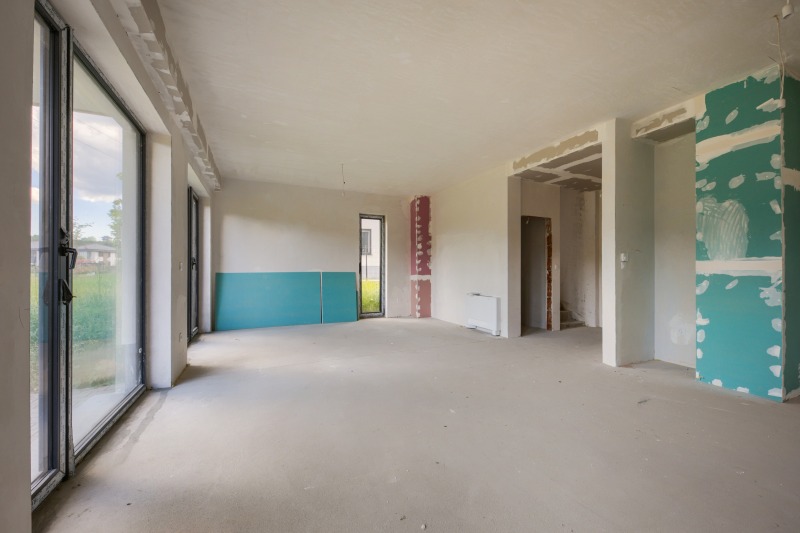Къщата е изградена изцяло от висококачествени материали, които я правят изключително комфортна и енергоефективна. Дограмата е с отлични топло и шумоизолационни характеристики, отоплението навсякъде е водно подово с високоефективна термопомпа, управлявана от стайни термостати във всяко помещение.
