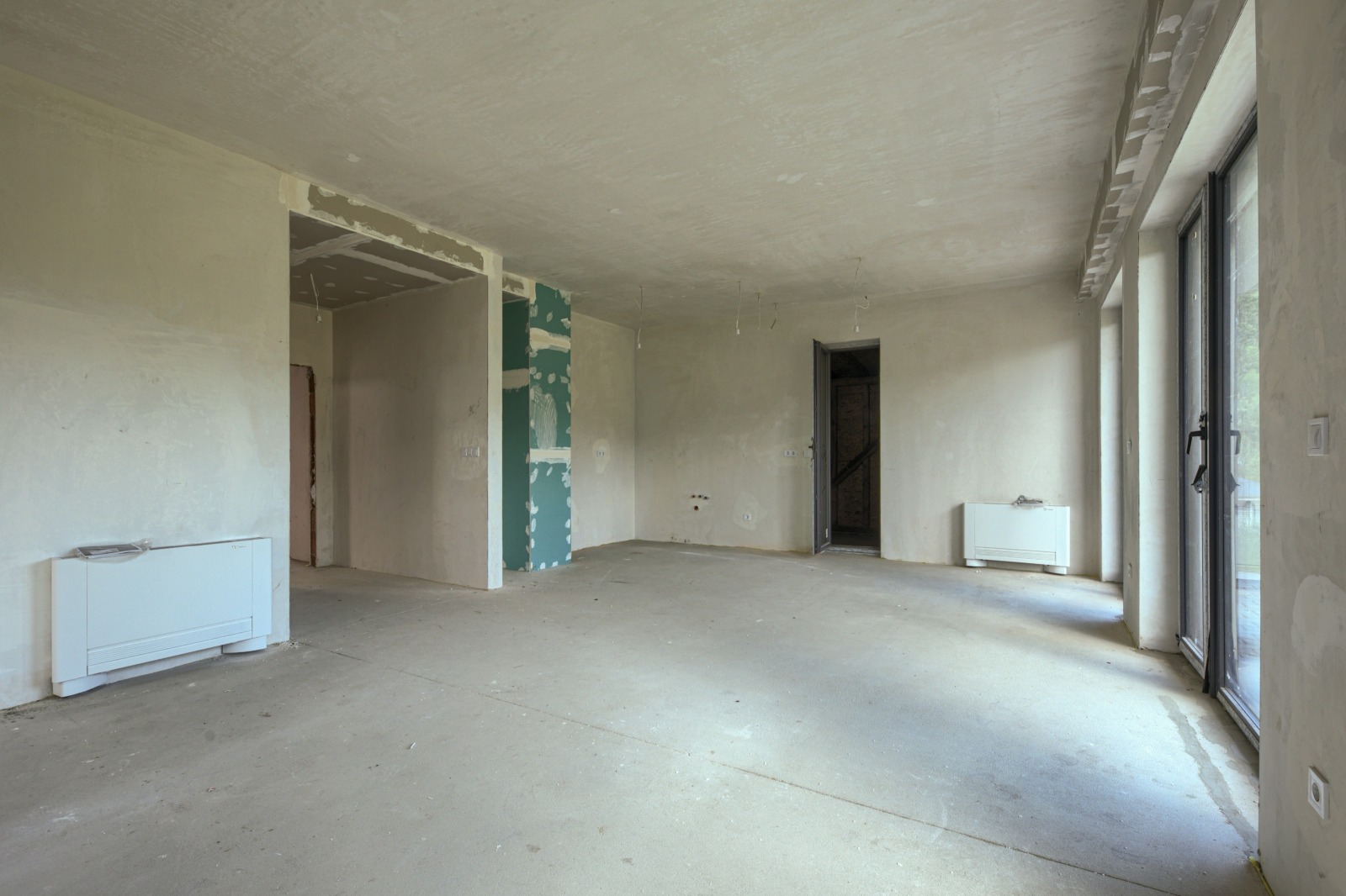 просторна и светла всекидневна и трапезария с прозорци тип френски, от които се излиза към веранда и озеленен двор;