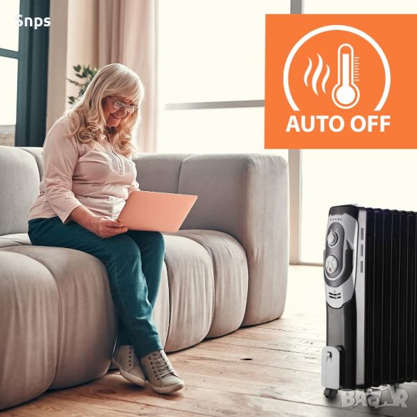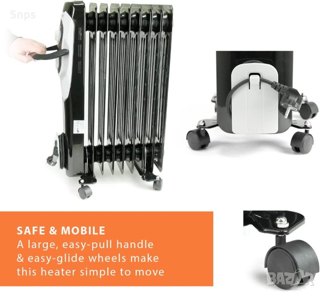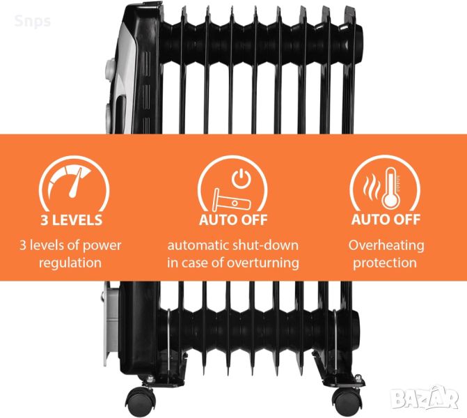 Електрически маслен нагревател Kiano | Отопление на нафта | Енергоспестяване | Защита от прегряване | Ръчен термостат | Автоматично изключване при накланяне | Мобилно отопление