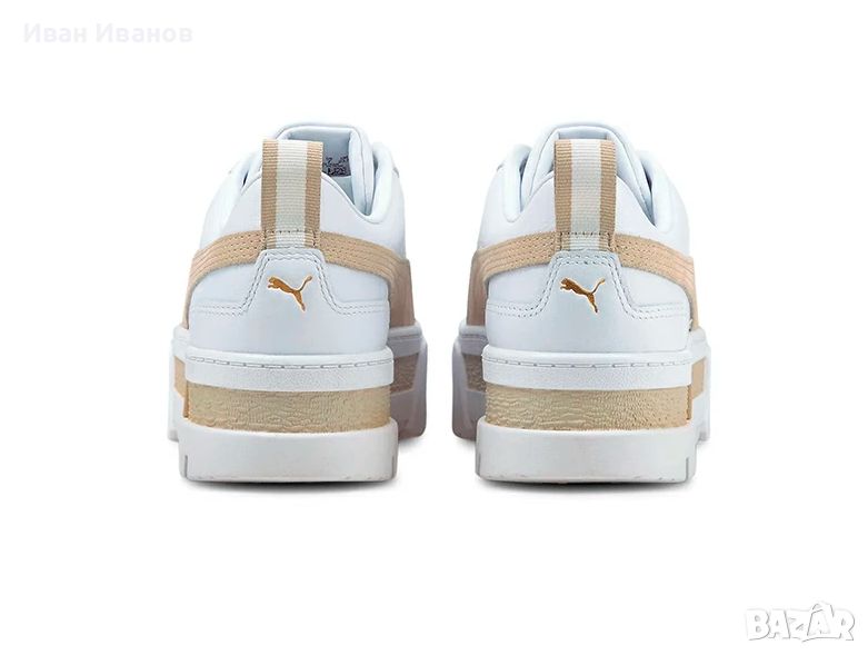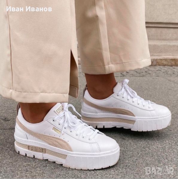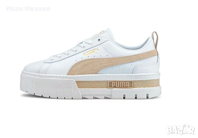Puma Mayze White Peyote (WMNS) са стилни маратонки от реномираната марка Puma. Със своя чист бял цвят и модерен дизайн, тези маратонки са едновременно модерни и удобни. Независимо дали ходите на фитнес или изпълнявате задачи, тези маратонки Puma са перфектният избор за всяко ежедневно облекло.
