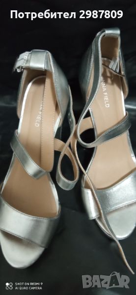 Дамски Обувки в сребристо на Висок Дебел Ток в сиво номер 41 → Обява 46205886