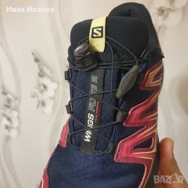 обувки SALOMONWings Flyte 2Стелка 24Много малко използвани , без следи и забележки , без изтърквания по подметката .Salomon wings flyte 2 обувка за бягане Gore-Tex, новоразработената и лека salomon wings flyte 2 е създадена, за да ви позволи да бягате с увереност по технически пътеки. Осигурява сцеплението и возенето, необходими за закрепване на спусканията с еволюирало шаси на acs заедно с геометрията на ушите за спускане, известна като контрол на спускането на задния крак. Предлага се защита на вашия крак и се осигурява меко кацане при скачане от дънери, камъни или вариации на пътеки с щедрото омекотяване от eva. Прецизно, равномерно и удобно прилягане се предлага от удобната по-широка чувствителност за километри бягане по пътека. Gore-tex горна част, докато бягате по пътеката, има вероятност да се сблъскате с различни камъни, клони и други отпадъци, които могат да се закачат във вашите връзки и да ги накарат да се развържат или дори евентуално да се скъсат. . Тази обувка е направена с много популярна и изключително ефективна функция, известна като gore-tex. Gore-tex е материал, използван в горната част, който прави обувката напълно водоустойчива и е много издръжлива. Друга характеристика на горната част, която помага да предпазите крака си от отломки, е покритието на езика, което е удобно, издръжливо и много ефективно срещу отломки, както и срещу кал. . Поддържането на краката ви възможно най-хладни е много важно, ето защо salomon включва 3d еластична въздушна мрежа в wings flyte 2, която е отворена мрежа, която осигурява максимална дишаемост. Предната част на обувката и стъпалото също са защитени от защитна синтетична капачка за пръсти, когато сте изправени пред малко по-насечен терен. Междинната подметка Eva прецизно и сигурно прилягане се осигурява от sensifit feSalomon Wings Flyte 2 Black Blue - С тези невероятни маратонки за пътека ще ходите с пълен комфорт и сигурност по време на пътуванията си, гарантирайки голям комфорт и повече защита.SALOMON WINGS FLYTE 2 BLACK BLUE, МАКСИМАЛНА ЗАЩИТА И КОМФОРТС обувките за бягане Salomon Wings Flyte 2 в черен и син цвят ще се насладите на невероятно пътуване в планини и писти с пълен комфорт и страхотно закопчаване. Осигуряват отлично поглъщане на удари и максимална стабилност , което ги прави идеални за всички видове терени.Освен това външната подметка предлага страхотно сцепление , като се държи перфектно при спускане и е по- устойчива на кал. Що се отнася до превъзходната част, тя е направена с мрежа GoreTex, която осигурява оптимално прилягане , осигурявайки повече защита , за да се избегне навлизането на вода и мръсотия в обувката.
