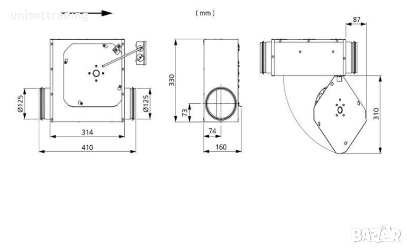Вентилаторът е предназначен за свързване към въздухопроводна мрежа.