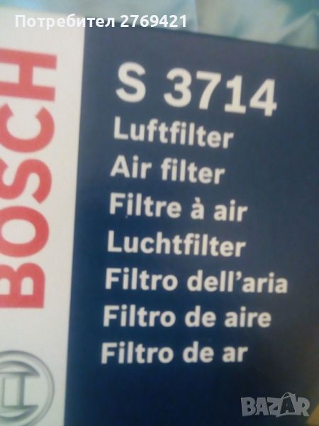 Въздушен филтър BOSCH S 3714 → Обява 46214564