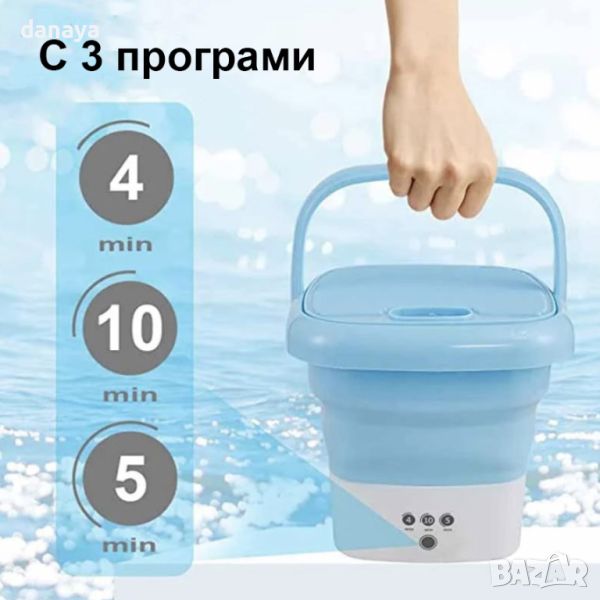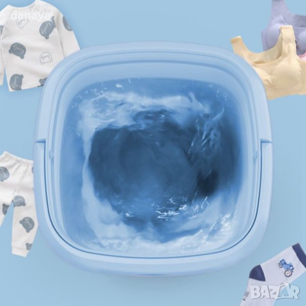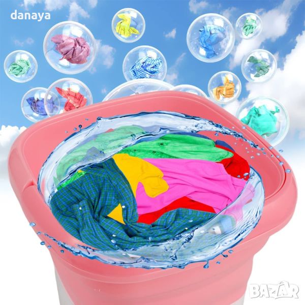 Преносима перална машина за почивка или пътуване. Преносима пералня за почивка или пътуване. Малък и сгъваем дизайн. Перете дрехите бързо и ефективно. Идеален за кемпер, каравани. Сгъваемият дизайн и леката конструкция го правят удобен за пренасяне и пестящ място. Подходяща е за пране на бельо, тениски, бебешки дрехи, чорапи и други дребни предмети. Не е подходяща за пране на палта, дънки или други тежки дрехи. С нея можете да измиете идеално плодове или зеленчуци.