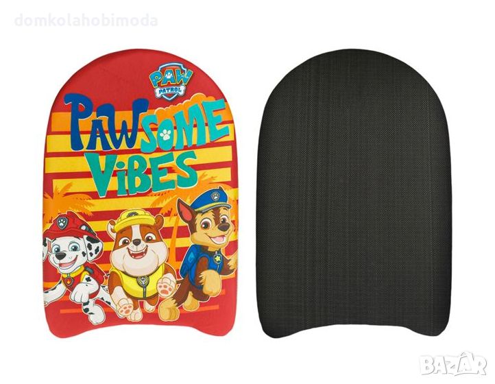 дъска за плуване Paw Patrol за в червено с надпис „Paw Some Vibes“.