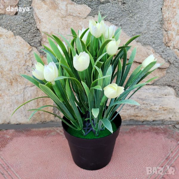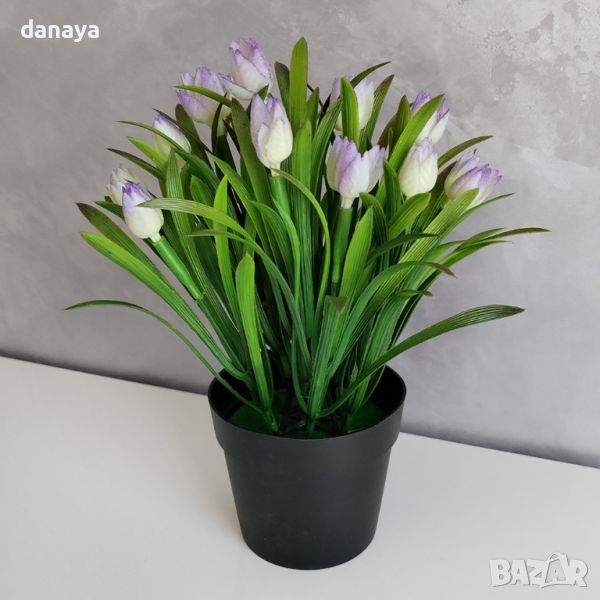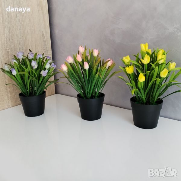 Изкуствено цвете в кашпа. Красиви изкуствени цветя в саксия. Чудесна декорация за дом или офис. Предлагат се в различни цветове на цветчетата.