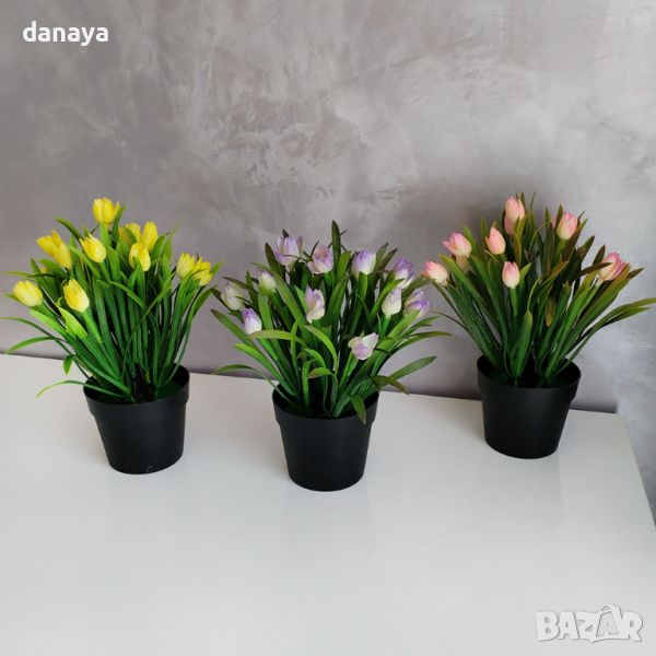 4925 Изкуствени цветя букет лаленца в саксия, 25 см
