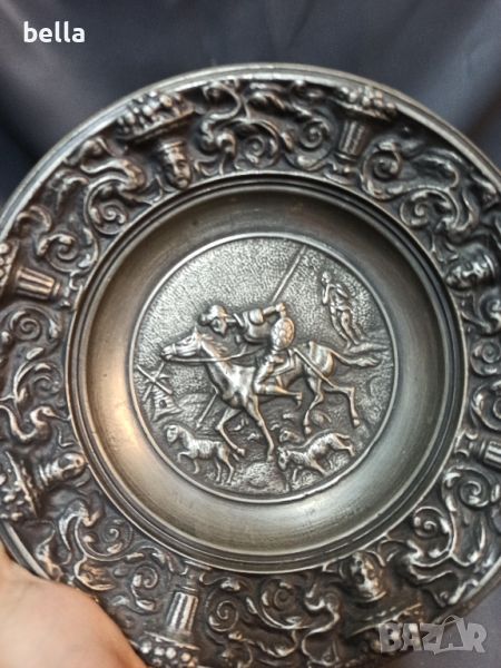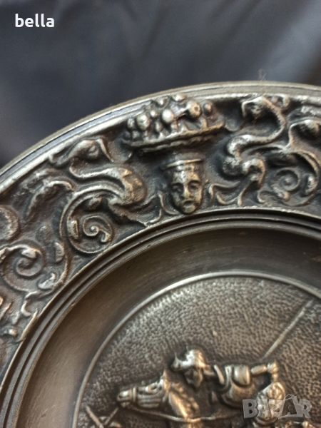 Масивна чугунена фирмена чиния за стена ДОН КИХОТ,маркировки в задния край изцяло отстрани с фигури и орнаменти ,релеф и отлипна детайлна изработка ,22 см диаметър.Цена 100 лв