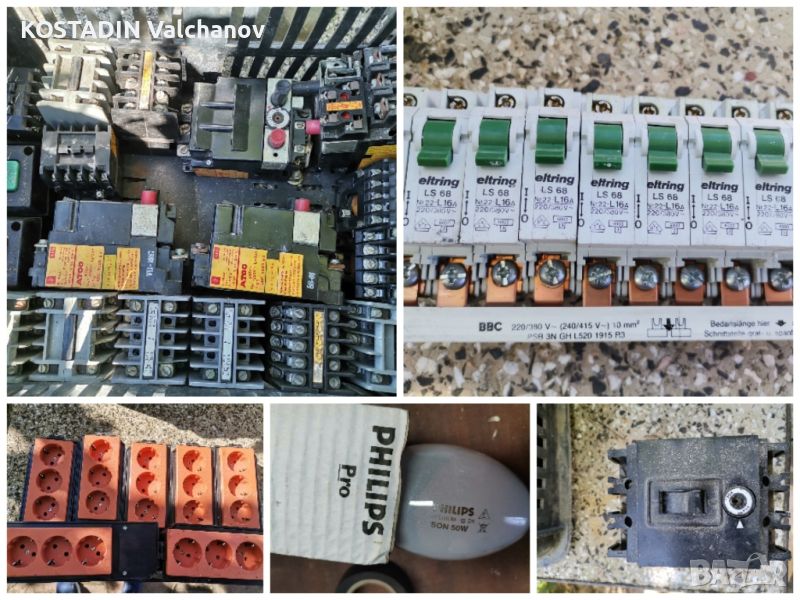 Контактори, моторни защити, контакти, предпазители 10бр:всичко по 10лв. Шалтера 30лв.